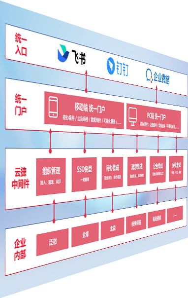 对协作平台提供支持服务,,支持企业应用与协作平台对接,,,,包含组织同步、、、、消息集成、、、待办集成等。。。支持目前主流的协作平台:钉钉、、企微和飞书。。